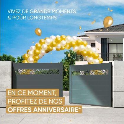 Jusqu'au 31 octobre 2024, bénéficiez d'offres exclusives sur les produits Tschoeppé* (portail, portillon, poteaux, clôture et brise-vues en aluminium).